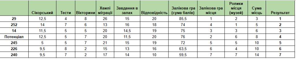 А в день залікової гри робота команд кипіла, частина команди відповідали на запитання про експонати музею та історію його створення, частина виконувала завдання в залах музею, де потрібно було знайти відповіді на питання серед експонатів. Третя частина команд відвідала додаткову екскурсію по експозиції, присвяченій Ігорю Сікорському, де також виконувала відповідні завдання.