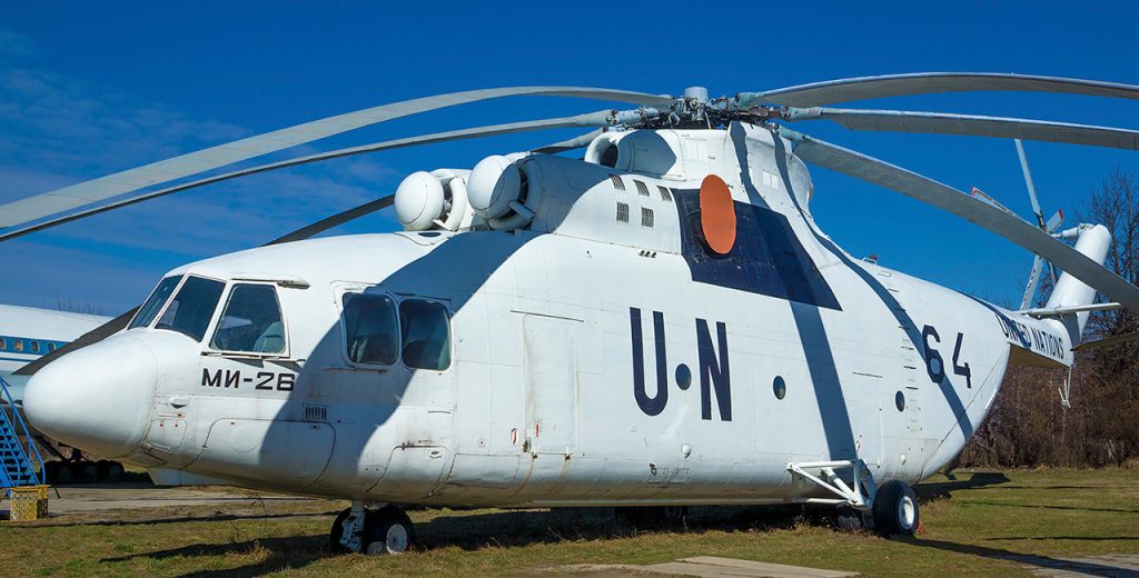 Він здатний перевозити до 20 тон вантажів зі швидкістю до 300 км за годину. Має діаметр гвинта 32 м. Такі потужні машини мають на озброєнні лише дві держави -Україна і росія. Музейний примірник несе білий камуфляж як пам’ять про участь українських авіаторів у миротворчих операціях під егідою ООН. Перший політ цієї машини було здійснено 14 грудня 1977 року.