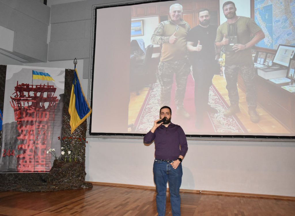 Щирі слова пам’яті та шани також пролунали від таких почесних гостей, як Ахтем Сеітаблаєв, режисер фільму «Кіборги», Кирила Олександровича Фесика, голови Оболонської районної в місті Києві державної адміністрації та Наталії Нагорної, журналістки ТСН.